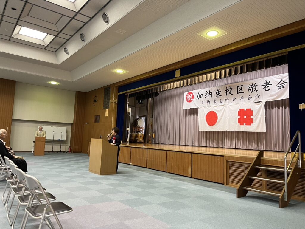 今日は、加納東校区の敬老会にお招きいただきました。元気な皆さんのお顔を拝見できて、とても嬉しかったです。